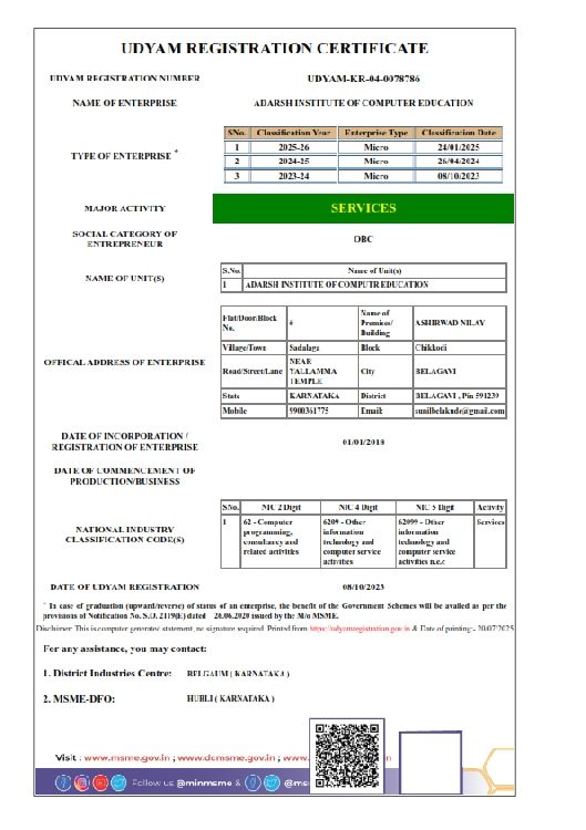 Join Adarsh Institute of Computer Education-Learn Today, Lead Tommorrow ! 100% Practical Training | Govt- Certification | Limited Seats- Enroll Now !!